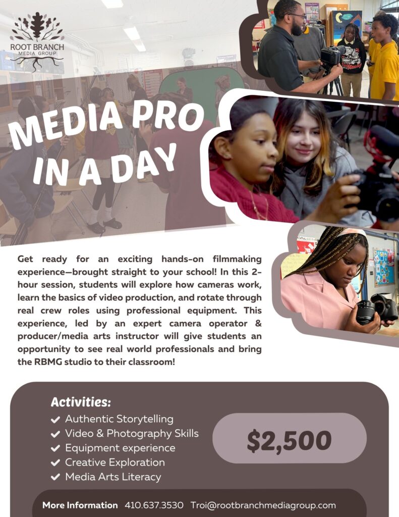 Come and Visit with us at The RBMG Building and tour our 14,000 sf media studios. Root Branch Media has opened our doors to offer field trips and media arts experiences at our studios on Baltimore’s beautiful harbor in Canton exclusively for our school partners.…